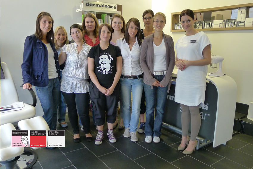 Gleich mit acht ihrer Schülerinnen kam Frau Schenkel von der Willy-Brandt Schule zu Besuch in die Kosmetikschule Schäfer. Die ambitionierte Lehrerin hat ihrer Abschlussklasse mit dem Infotag in der Kosmetikschule einen große Freude bereitet. Viele ausgebildete PKA und PTA interessieren sich für eine Kosmetikausbildung, um in der Apotheke besser auf die wachsenden Bedürfnisse der Kunden nach professioneller Hautpflege eingehen zu können. Studien zeigen, das Konsumenten bei Hautproblemen in vielen Fällen zuerst Rat in der Apotheke suchen, bevor sie zur Kosmetikerin oder zum Hautarzt gehen. Auch die Schülerinnen der Willy-Brandt-Schule zeigten großes Interesse an den Aus- und Weiterbildungsmöglichkeiten in der Kosmetik. Speziell für das hohe Anforderungsprofil der Apotheken erarbeitet das Lehrerkollegium der Kosmetikschule Schäfer Ausbildungsmodule, die ab dem Spätjahr zur Verfügung stehen werden.